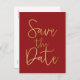 Red & Gold SAVE THE DATE Modern Script Postcard