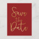 Red & Gold SAVE THE DATE Modern Script Postcard.