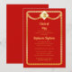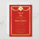 A gold graduation cap and rounded serpentine frame gold tone and red graduation party invitation design that can be personalised for high school, college, university or vocational school graduations. Composite design by Holiday Hearts Designs (rights reserved).