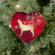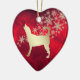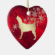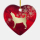 This unique Holiday ornament will make a wonderful keepsake gift for any one who loves a Beagle! It features a gold silhouette Beagle dog image in front of a spray of ornate gold snowflakes. The image is placed on a gradient deep Christmas red background. The back of the ornament has the same red background and gold snowflakes, and a text field for you to customise.