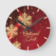 Red & Gold Snowflake Filigree Custom Christmas Round Clock