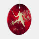 This unique Holiday ornament will make a wonderful keepsake gift for that special tennis player It features a gold silhouette figure and ball in front of a spray of ornate gold snowflakes. The image is placed on a gradient deep Christmas red background. His name is in gold at the bottom left. The back of the ornament has the same red background and gold snowflakes, and a text field for you to customise. *If you prefer to have a different ornament shape, and need to re-position the text, use Customise.