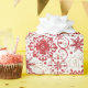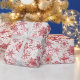A beautiful red and white snowflake pattern is displayed on a white background in this image. The pattern features intricate red snowflakes with white or gold accents, creating a vibrant and eye-catching design. The colours of red and white complement each other perfectly, giving a classic and elegant look to the fabric. The pattern could be described as a mix of floral and snowflake elements, with the red and white colours reminiscent of the holiday season. This fabric would be perfect for creating stunning garments, home decor items, or any craft project that requires a touch of sophistication and charm.