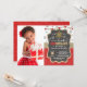 Vibrant winter ONEderland birthday photo invitation in sparkly red, gold and silver glitter