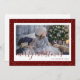 Custom red and gold photo Merry Christmas cards with calligraphy title and a red snowy photo frame. Easily personalise these photo Christmas cards with your image, family name and text.