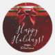 Red & Gold Sparkle Chic Bow Elegant Holiday Favour Classic Round Sticker