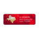 This beautiful return address label will make a statement on your correspondence!. It features a gold dipped Texas state image in front of a splatter of gold stars. The image is placed on a bright red background. Your custom text is in easy to read white at the right. Pretty! *Thanks to ClipArtBrat for the Texas graphic used in this design.