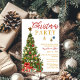 This Christmas party invitation features a vibrant, decorated tree adorned with colourful ornaments, golden bells, and a star topper. Wrapped presents sit below, and "Christmas Party" is written in festive red and gold fonts with hanging baubles adding charm to the design.