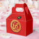 Composition with golden traditional Chinese paper-cut of a Snake into a decorated circle + small modern lettering for Year of the Snake 2025 and Chinese snake Ideogram Symbol onto a small black circle. Design on gable favour box + Business name and address to customise with red background. Available in cube, tent and take-out favour boxes. Matching greeting card, holiday postcard, invitation, party supplies and more. Perfect for Chinese New Year of the Snake 2025 or birthday (people born in Snake Year).