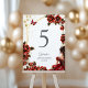 Red Golden Tiara Roses Butterflies Quinceañera Table Number