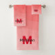Red gradient geometric mesh pattern Monogram Bath Towel Set
