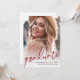 Simple Minimalist Graduation Announcement & Party Invitation. The front features a full-page photo with “Graduate” in bold red handwritten script across the bottom for a striking, celebratory touch. Below, the graduate’s name, “Class of 2026,” and the school name appear in a clean mix of red and black fonts, set over a soft white gradient that fades seamlessly into the image so everything stays clear and easy to read.