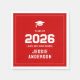 This bold and modern graduation design features a vibrant red background framed with a clean white border for a polished, standout look. Centered typography highlights “Class of 2026” beneath a classic graduation cap icon, creating a strong and celebratory focal point. The name and school text shown are part of a template and can be fully customized to match your graduate’s details. The crisp white lettering contrasts beautifully against the red backdrop, making this design perfect for adding a cohesive and stylish touch to graduation party settings and table décor.