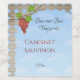 A single bunch of big red grapes hang from the vine on a lattice arbor on this design. All text can be easily customised.