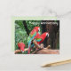 Red, green and blue parrots happy anniversary postcard