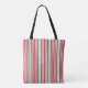 The Red, Green and Blush Festive Striped Tote is a chic and versatile accessory that effortlessly combines style with functionality. This tote bag showcases a dynamic pattern of red, pink, and green stripes, creating a lively and fashionable statement for those on the go.
