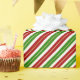 This festive and fun wrapping paper is versatile and can be used for giving gifts or art and craft projects. It is ideal for any occasion such as holidays, birthdays, weddings, bridal showers, baby showers, anniversaries or general gifts. The design features red and green diagonal stripes on a white background. Perfect for Christmas.