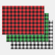 Classic Christmas colour buffalo plaid pattern wrapping paper multi set in black and white, bright red, and kelly green for 2024.