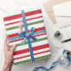 Red Green and White Stripes Christmas Wrapping Paper