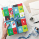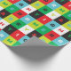 Wrap your gifts with this retro-style, textural type in bright, colorful combination wrapping paper and spread modern holiday cheer this season. This pattern features squares of black, white, red, lime green, kelly green and aqua and gives a little graphic punch to your pile of presents under the tree.
