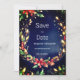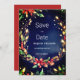 This elegant and festive winter-Christmas wedding Save the Date invitation is perfect for the holiday season. It depicts red, navy blue, and green watercolor flower wreathe on a navy blue gradient watercolor background. This winter flower design is perfect for trendy and stylish party events. Design with your message and information. All designs are printed.