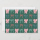 Celebrate the season in style with this charming, coquette-inspired Christmas Holiday Soirée Party invitation, featuring hand-drawn bows, soft colours, and a romantic, ribbon-filled design. The front features four hand-drawn bows—one bold pink ribbon with red stripes, one green ribbon with navy stripes, plus two smaller accents in classic red and green. The back offers a cheerful green background with a delicate bow pattern.