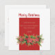 Watercolor flowers Red green Christmas Flat Card. The text can be completely personalised with your choice of greeting, family name, year, and a custom message inside the card.