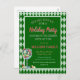 This Red & Green Christmas Holiday Party Postcard, or holiday party invitation, features a festive design with elegant gold script lettering on a black background, surrounded by a red and green tartan or plaid pattern.