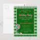 This Red & Green Christmas Holiday Party Postcard, or holiday party invitation, features a festive design with elegant gold script lettering on a black background, surrounded by a red and green tartan or plaid pattern.