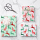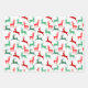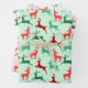 Red Green Christmas Reindeer Silhouette Pattern Wrapping Paper Sheet