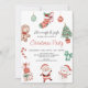 Cute Christmas themed party invitation featuring various Christmas item around the outer edge of the invitation. A Santa Claus, Christmas tree, gingerbread man, snowman, presents and more on a white background. This Christmas themed invitation could be used for a Christmas party or close to Christmas birthday party and is a sweet way to invite your Christmas guests.