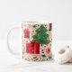 Celebrate the season with this festive coffee mug featuring a bright red and green pattern of Christmas trees, wrapped gifts, candy canes, and snowflakes. A fun and cheerful holiday design, perfect for sipping cocoa, tea, or coffee all winter long. Makes a joyful gift for holiday lovers or a merry addition to your kitchen.