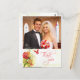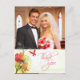 This stylish chic Wedding Thank you photo postcard has a red and green watercolor floral design with two butterflies flying at the bottom left. At the bottom, there is a soft grey silhouette of some water lily flowers. In the background, there is a soft green distressed look. At the top, you can easily customise this with your photograph. On the bottom right, Thank you is written in a trendy swirl font. On the backside, you can easily personalise the thank you message along with the names of the bride and groom and the date of the wedding ceremony. This is an affordable way to say Thank you to all of your friends and family who were a part of your wedding day.