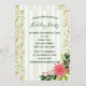 Green and White Stripe with gold sparkles and a poinsettia Christmas holiday party invitation. All fields can be personalised.