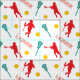 Your lacrosse player will love to sport this design! Featuring two silhouettes of male players in motion with the word "LACROSSE", balls and sticks repeating for the pattern. Available in oranges, lime/orange/turquoise, red/yellow/teal green, warm slate/brown/sage green, as well as a black/grey verson on school colour backgrounds. Matching products available.