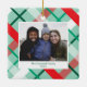 Celebrate the magic of the season with the Red Green Mint Plaid Christmas Photo ornament. This festive and cheerful ornament is the perfect timeless keepsake to gift to your loved ones and prominently display on your own Christmas tree. Add your favourite family photo and personalise with your greeting or family name to make it one-of-a-kind gift. The double-sided ornament is the same on front and back so will always look perfect on your tree.