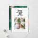 Red + green modern abstract joyful 3 photo holiday card