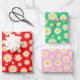 Red, Green & Pink Mixed Summer Daisies Wrapping Paper Sheet