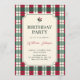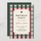 Red green plaid tartan pattern birthday invitation