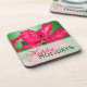 This festive red and green poinsettia "Happy Holidays" coaster set would make a lovely Christmas or hostess gift . The text is customisable.