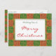 A custom Merry Christmas postcard template with a background pattern of elegant fleur de lis tiles on one side and room for your return address on the back in red and green letters. Customise It to change fonts, sizing and more, even save you design for later.