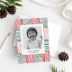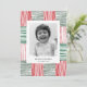 Red Green Watercolor Stripes Pattern One Photo Holiday Card