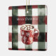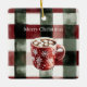Red Green White Plaid Snowflakes Cocoa Christmas Ceramic Ornament