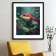 Decorate your home with this fantasy, quirky, kitschy illustration. A vibrant, giant lizard with red, green, and yellow scales sits in lush jungle foliage. Its textured skin blends with the leaves, creating a mystical atmosphere. Makes your living room or bedroom a special place to relax and unwind.
