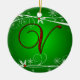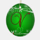 Green background with Red and White Holly and white swirls and snowflakes. Personalise with your own name or other information on the back or leave blank.
