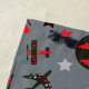 This fun beach towel has red, black, and grey aeroplanes flying all over it! There are two styles of planes in different patterns and colours. Among the planes are red, black, and grey stars. At the centre is a bright red aeroplane framed in a black circle. Everything is placed on a medium grey background. Your name is written in white at the centre of the bath towel. If you'd prefer to remove it, just clear the field.