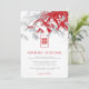 Oriental zen light ash grey, red and white zen bamboo leaves with a red minimalist rectangle double happiness symbol. A simple, stylish and classy chinese / asian themed wedding design.