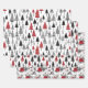 Red Grey Black Christmas Tree Pattern Wrapping Paper Sheet