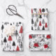 Here's a pretty red, grey, and black pattern on white Holiday series of wrapping paper. Two of the papers have similar patterns of silhouette forest trees in a boho style. The third paper has a coordinating red, grey and black pattern of poinsettia blossoms and berries. Modern and festive!