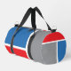 Red, grey, blue and your text, tricolor duffle bag